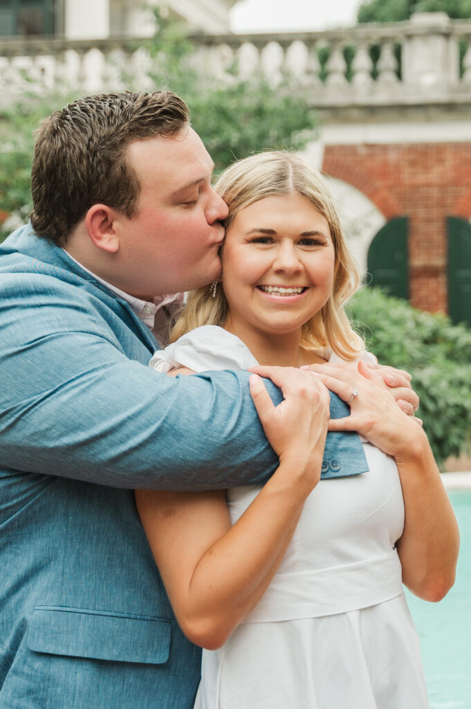 We started the session in the East Courtyard of the Rotunda at the University of Virginia. Between the architectural beauty and Michaela’s organized, empathetic nature, every shot felt intentional. Wade’s easygoing personality kept the mood light, even as the sky turned a deep, cinematic slate grey. We were able to capture their love against the iconic backdrop of the Lawn, highlighting: